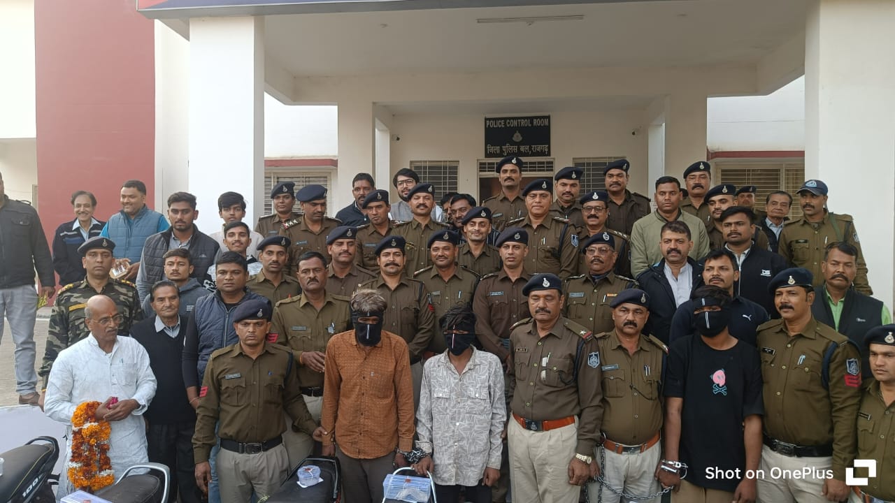 *जिला पुलिस की टीम*:- अनुविभागीय पुलिस अधिकारी राजगढ़ अरविन्द राठौर, 1 उनि. श्री धर्मवीर पलैया थाना खिलचीपुर 2. उनि. श्री अभय सिंह नरसिंहगढ 3. उनि. श्री जगदीश गोयल छापीहेडा 4. सउनि. आनंदी लाल सारंगपुर 5. प्रआर. बालिस्टर कालीपीठ 6. आर. धीरेन्द्र ब्यावरा शहर 7. आर. राहुल मीना ब्यावरा शहर 8. आर. दिनेश किरार ब्यावरा शहर 9. आर. गौतम मीना करनवास 10. आर. चेतन पचोर 11. आर. शहर बनवारी मीना ब्यावरा 12. आर. इन्द्रपाल सिंह छापीहेडा 13. आर. साहब सिंह छापीहेडा 14. प्रआर. दीपक यादव नरसिहगढ 15. प्रआर. केशव राजपूत नरसिंहगढ